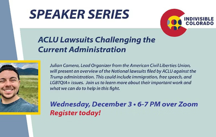 Indivisible December Speaker Series: ACLU Lawsuits Challenging the Current AdministrationPast eventDecember 3, 20251 attendee -