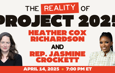 The Reality of Project 2025 with Heather Cox Richardson and Representative Jasmine CrockettPast eventApril 14, 202513 attendees -
