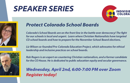 Indivisible April Speaker Series: Protect Colorado School BoardsPast eventApril 2, 20254 attendees -